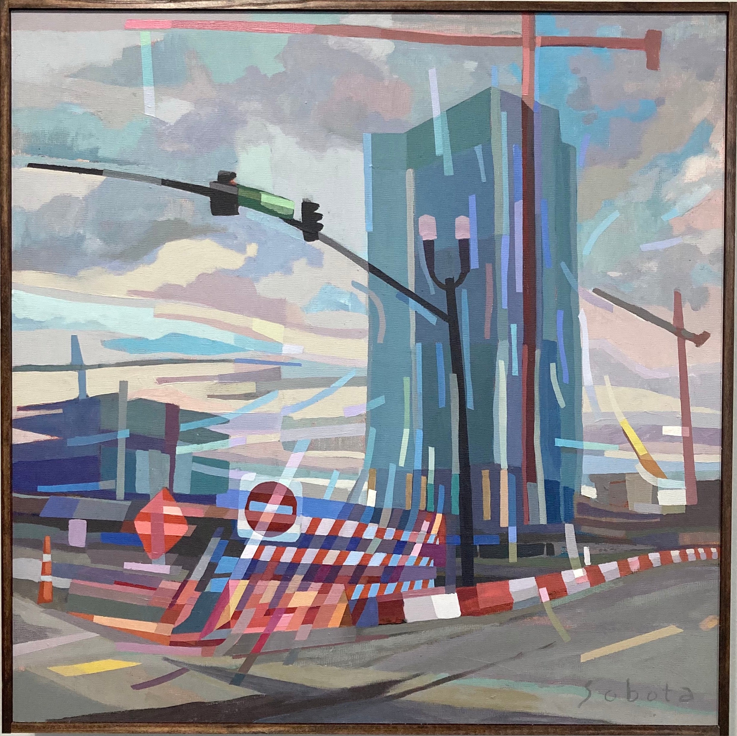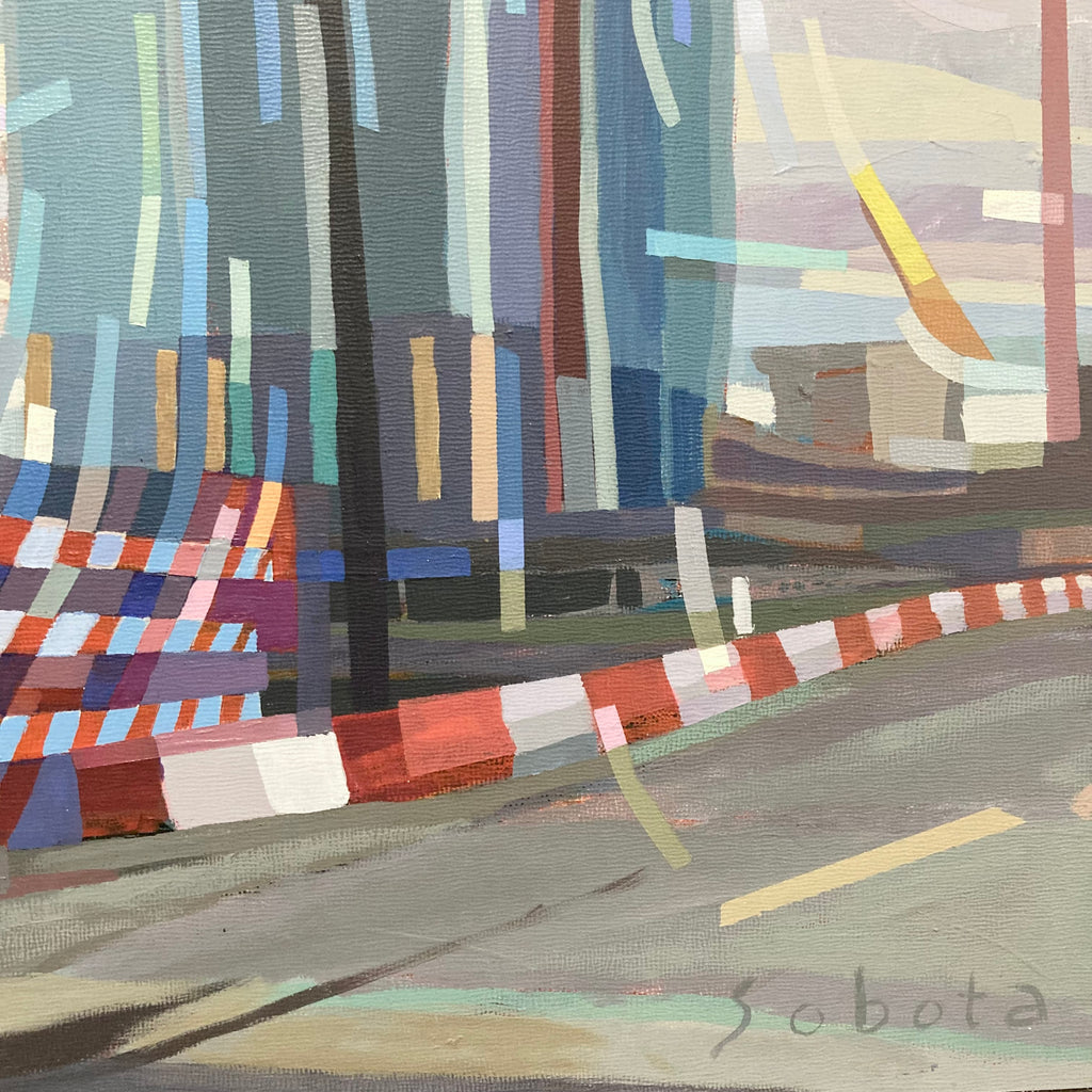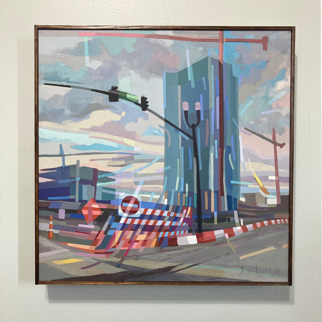 Tony Sobota is a Nashville based painter obsessed with the effects of color, movement, and structure. Since 2016 he has closely followed Nashville’s frantically changing real estate landscape, forming his interests into an ongoing series of observational studies and architectural abstractions. Mostly self-taught, his Art of Construction series helped him win top honors as a part of the Nashville Arts and Business Council’s Periscope class of 2017. He has been awarded several grants for public projects in the Nashville area such as his 2019 “Little Kurdistan Community Mural”, featured on NPR. Exhibiting at multiple gallery shows in the region his work “5th+Broad” was also chosen for Artfields 2021, one of the largest art shows in the South. Most recently his paintings appeared on the larger than life Nashville Sign, and can be found in the collections of Metro Nashville, Graduate Hotels, and Chartwell Hospitality, among others.