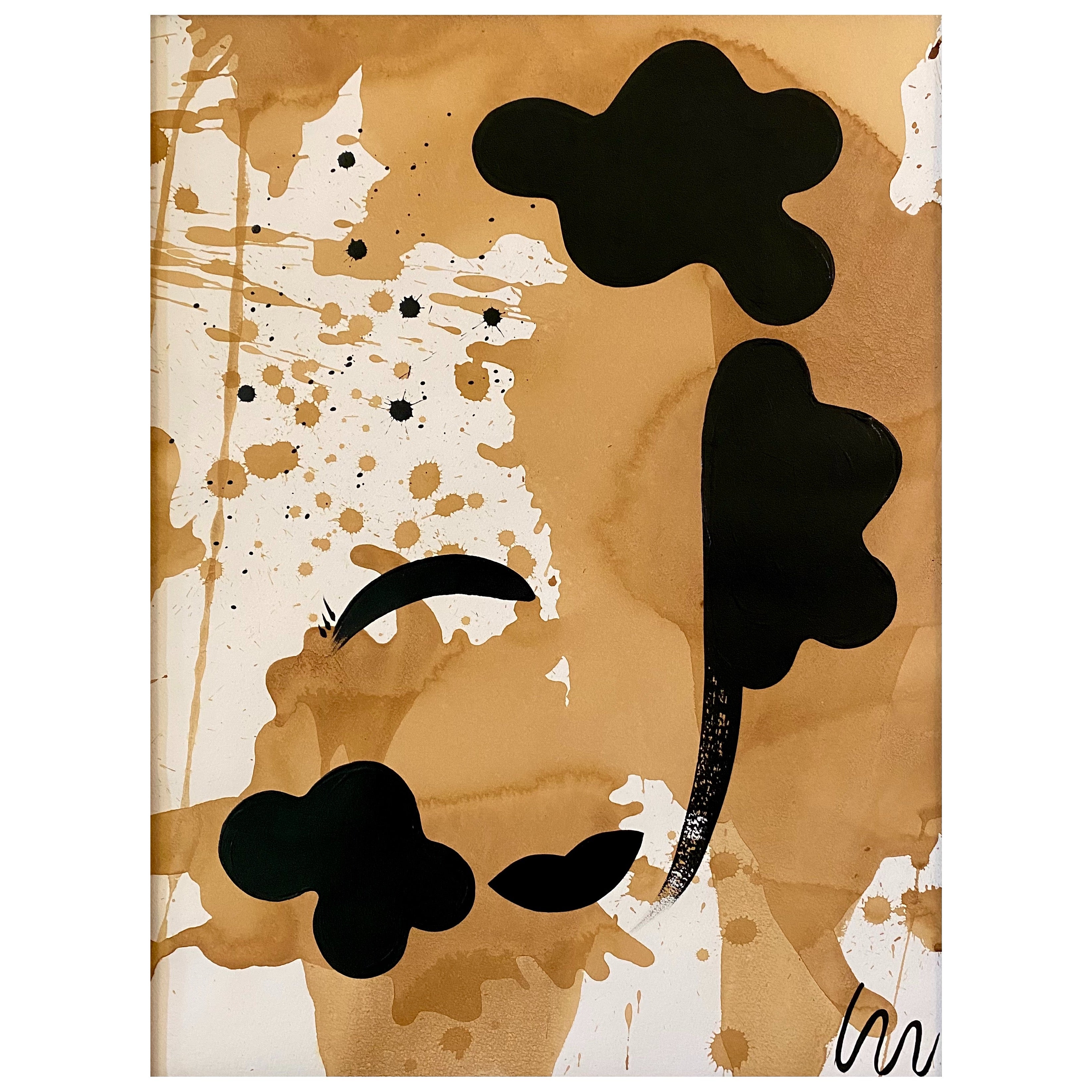acrylic on tea stained paper, in speckled gold frame with museum glass