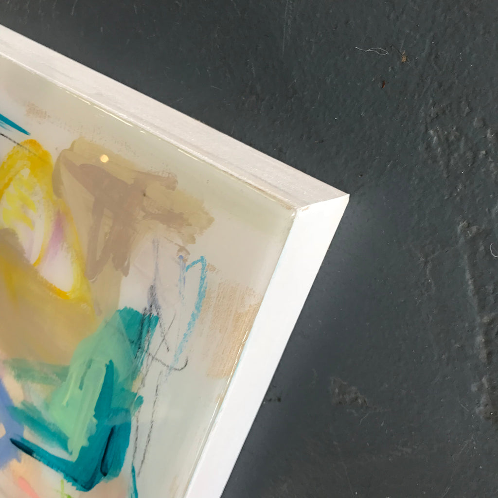 acrylic, oil pastel, charcoal and resin on cradled birch board