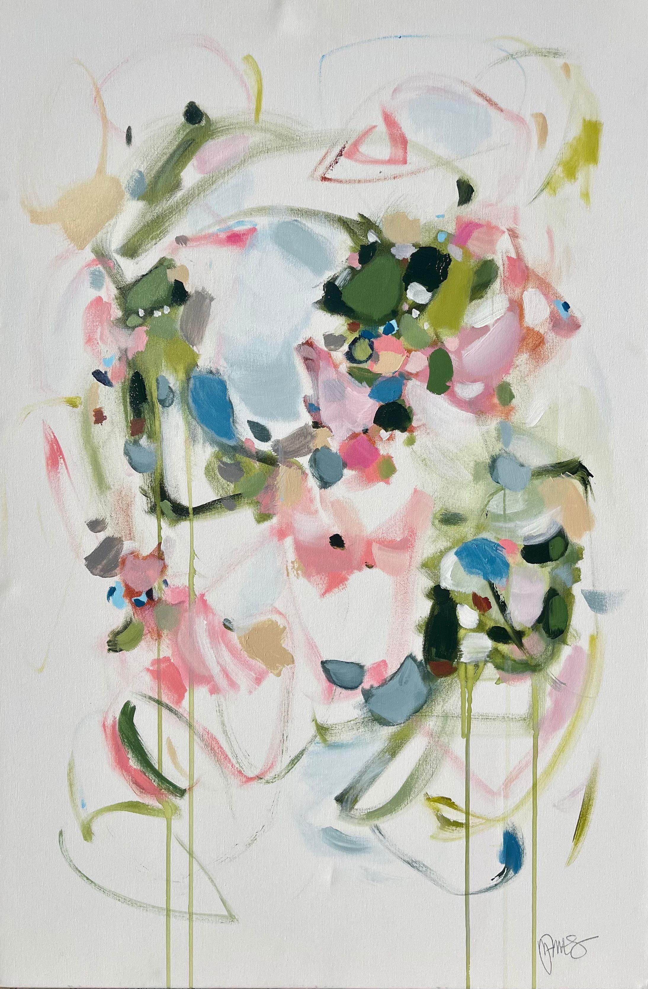 Michele James is an abstract painter known for her large works on canvas. She is inspired by color and movement and uses strong brushstroke and varied marks on neutral canvases with pops of bold colors. She paints with acrylics , and uses chalk, oil pastels and pencil to vary the texture and medium of her works. She is influenced by the colors in nature, the lightness and space of the sky, and the texture and depth of landscapes. “I love to make people happy and for a client to add my painting to their home is wonderful compliment” Michele received a BFA in fine art and art history at Hunter College in New York, NY with a concentration in studio painting. Michele paints out of her home studio in Atlanta where she lives with her husband and three kids.