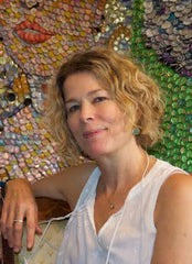 Molly B. Right specializes in oversized mosaic-like portraits made from vintage bottle caps. Right is a self taught artist. She began by painting small paintings, often on pieces of scrap metal or lumber that she found. The subject matter ranged from vignettes of her childhood, to minimalist figurative works. The leap from narrative paintings to the bottle cap portraits was made in 2002. "I was inspired by remembering my grandparent's desk. The drawers were filled with things that might have thrown away but were saved by people who were molded by depression era frugality; old rubber bands, corks, bottle caps, balls of string, 2" pencil nubs. I began a series of painting about things that people save and accumulate. The series was was beginning to lose steam, and as I pondered what to do with a large (4′x5″), rust stained, piece of sheet metal a friend had given me, the patterns of rust on the metal brought to mind the Shroud of Turin. I decided to use paint to enhance the vague suggestion of a face, and painted a man’s face on the metal. With the addition of bottle caps, a halo was formed, and bottle cap Jesus was born." Mary soon followed and Right knew that she had found her medium. Molly works in her Charleston studio, dividing her time between commissions and making pieces of her own inspiration. Please inquire for commissions!
