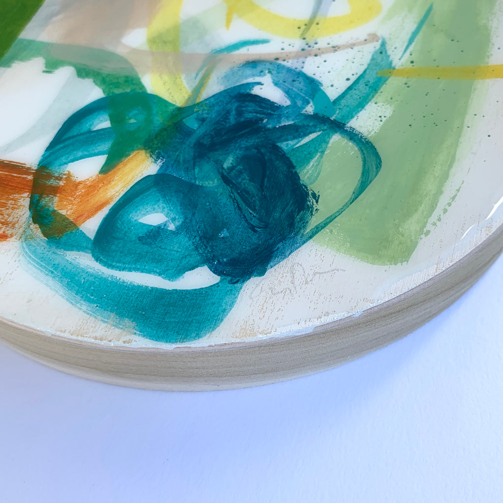 acrylic and resin on cradled round birch panel
