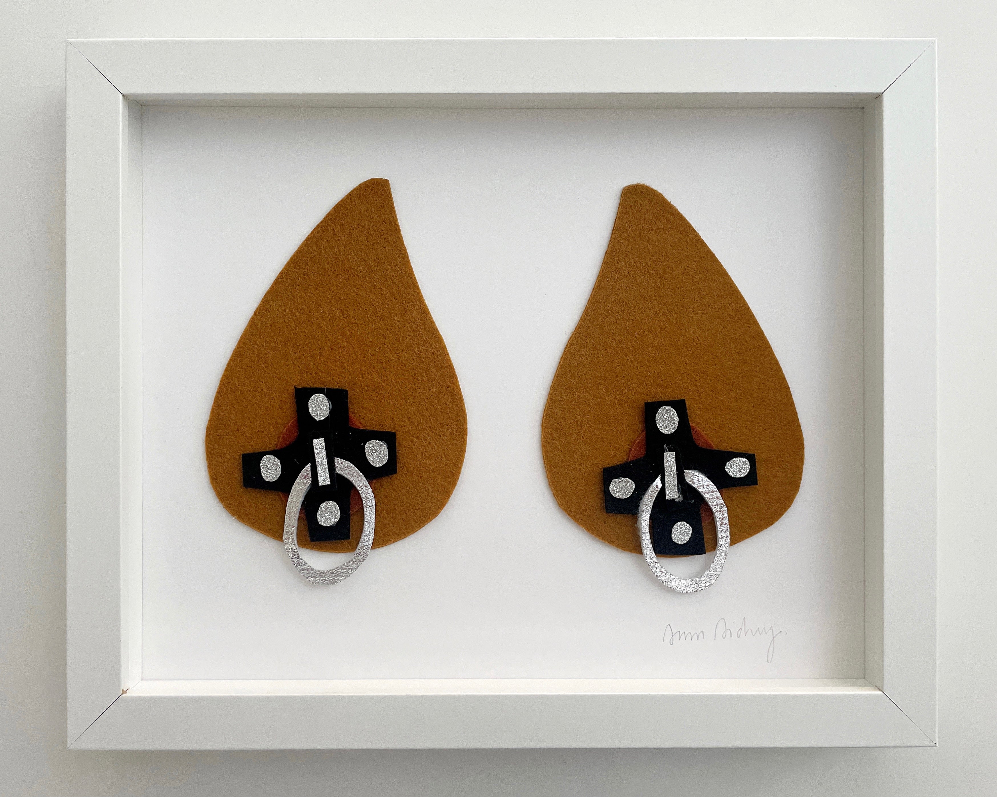 felt on paper, in white frame