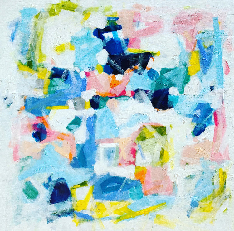 Michele James is an abstract painter known for her large works on canvas. She is inspired by color and movement and uses strong brushstroke and varied marks on neutral canvases with pops of bold colors. She paints with acrylics , and uses chalk, oil pastels and pencil to vary the texture and medium of her works. She is influenced by the colors in nature, the lightness and space of the sky, and the texture and depth of landscapes. “I love to make people happy and for a client to add my painting to their home is wonderful compliment” Michele received a BFA in fine art and art history at Hunter College in New York, NY with a concentration in studio painting. Michele paints out of her home studio in Atlanta where she lives with her husband and three kids.