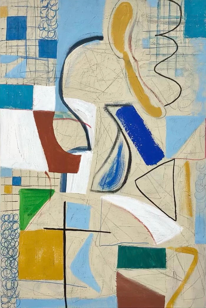 Brian Coleman received his degree in graphic design from the art institute of charlotte. “I begin my process with loosely drawing and exploring the freedom of gesture. It’s kind of like watching a bird soar, you don’t know if it will glide left, bend right, sail up or down.” Alternating between fluid and structured gestures undoubtedly reveals how Brian makes sense of the world as he moves through it. Coleman draws from a vast library of his free drawings to produce these layered creations that groove, and flow punctuated by color, line and forms that bring the rhythm of the painting to life. The images are pieces and parts of the past, present and future, in the process of becoming something else. The works become stories of their own, they come together to become another place in time. “I am never arriving at a place, and I am constantly using my pieces and parts in the process of a journey that never ends.”